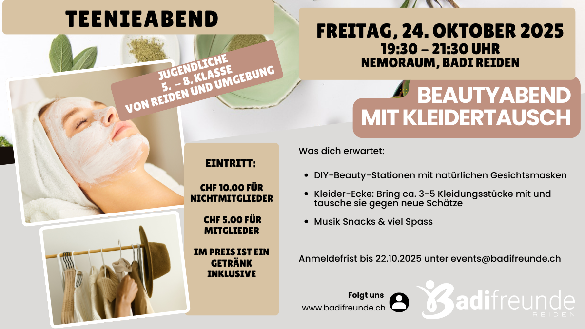 22.10.2025 | Teenieabend | Badifreunde Reiden | 19:30 - 21:30 Uhr |